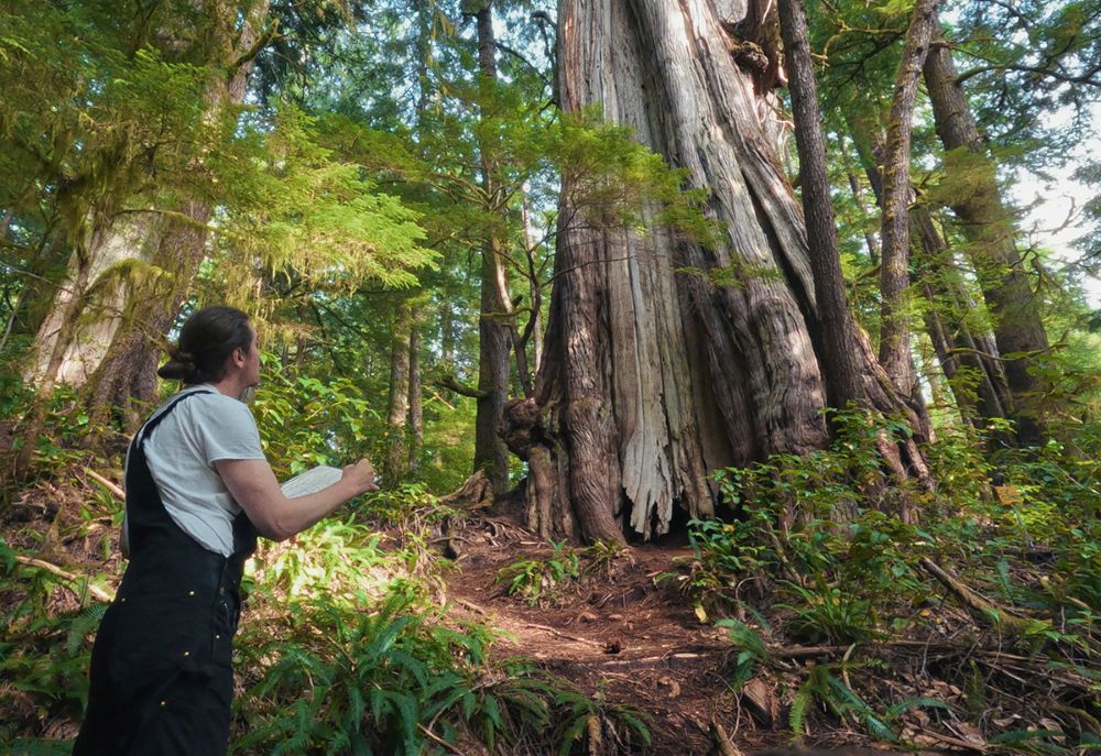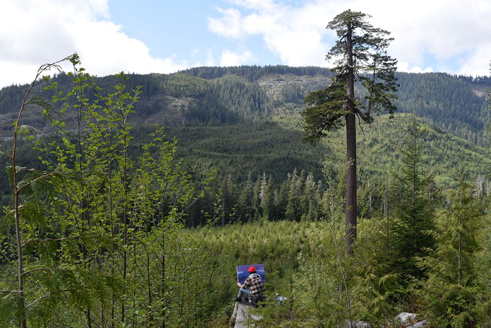 Painting in front of ‘Big Lonely Doug,’ near Eden Camp, Pacheedaht Territory, Vancouver Island