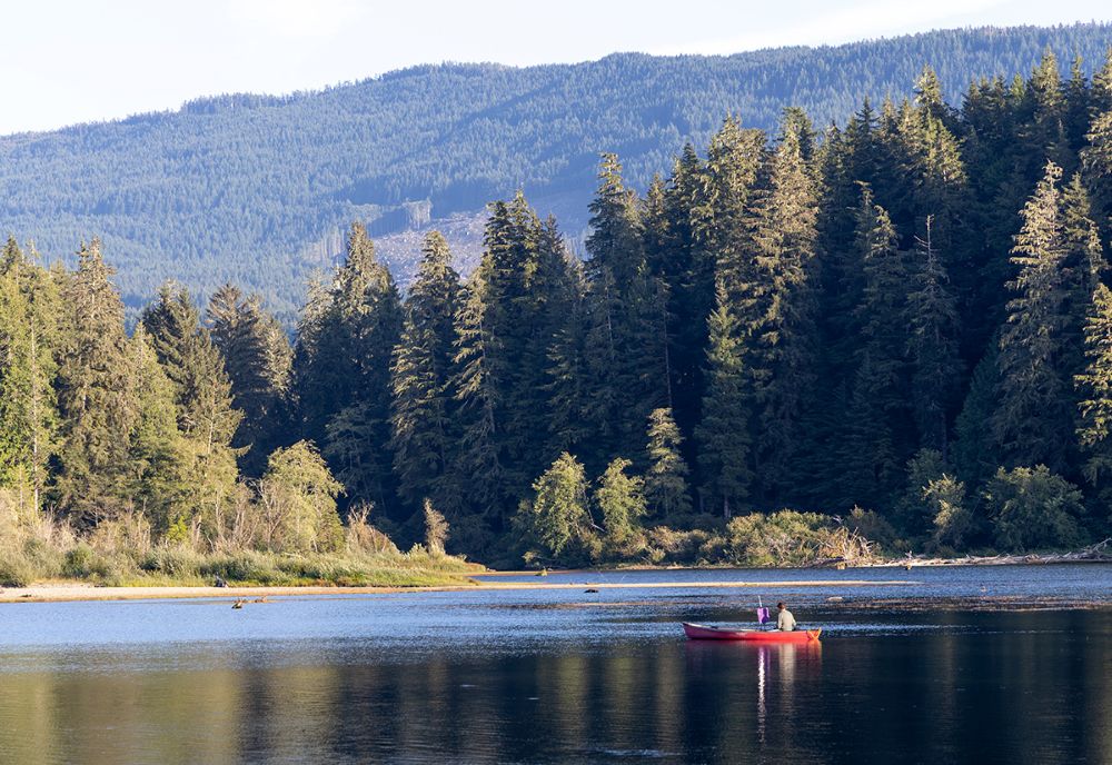 Painting on my canoe on Fairy Lake, Pacheedaht Territory, Vancouver Island