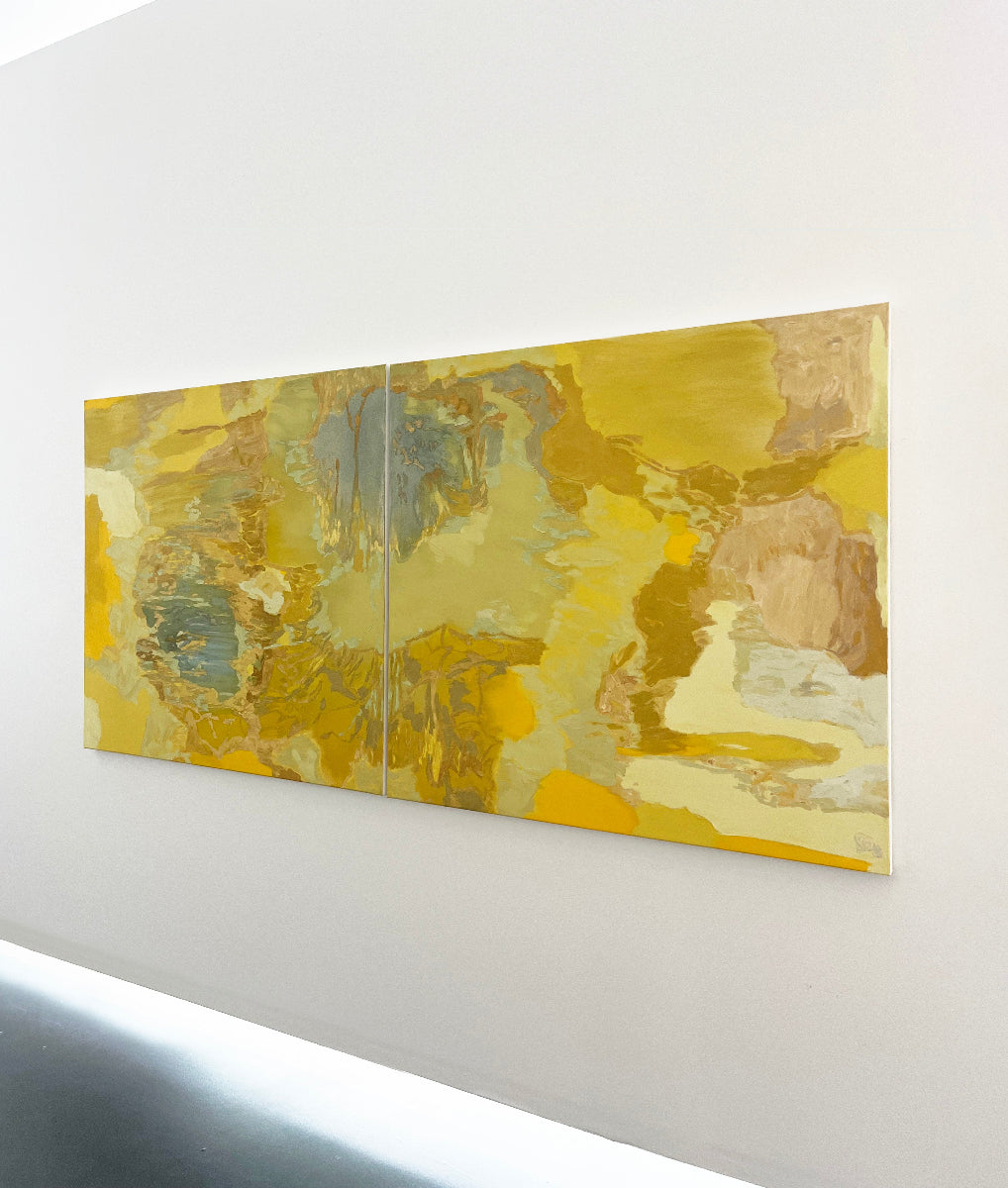 Anne Griffiths’ abstract work combines a sophisticated colour sense, highly visible gestural strokes, and well-balanced compositions that are suggestive of landscapes and organic forms. Paintings have a matte finish and are ready to hang framed or unframed.