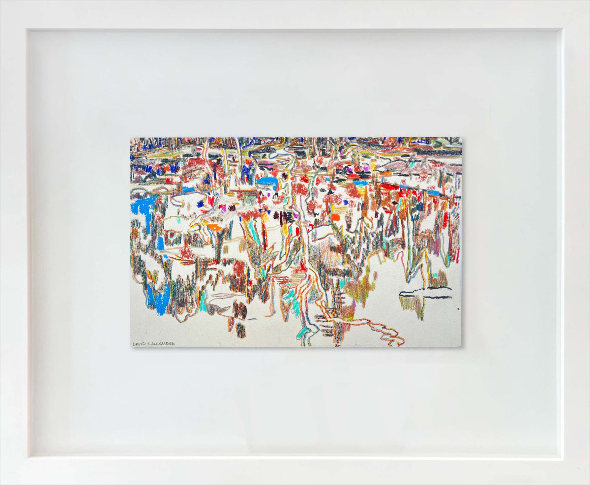 Alexander’s canvases exhibit high colour contrasts using a combination of dry and wet brushwork. Canvases display the artist’s gestural painting style, and have a matte finish. Paintings are ready to hang framed or unframed.