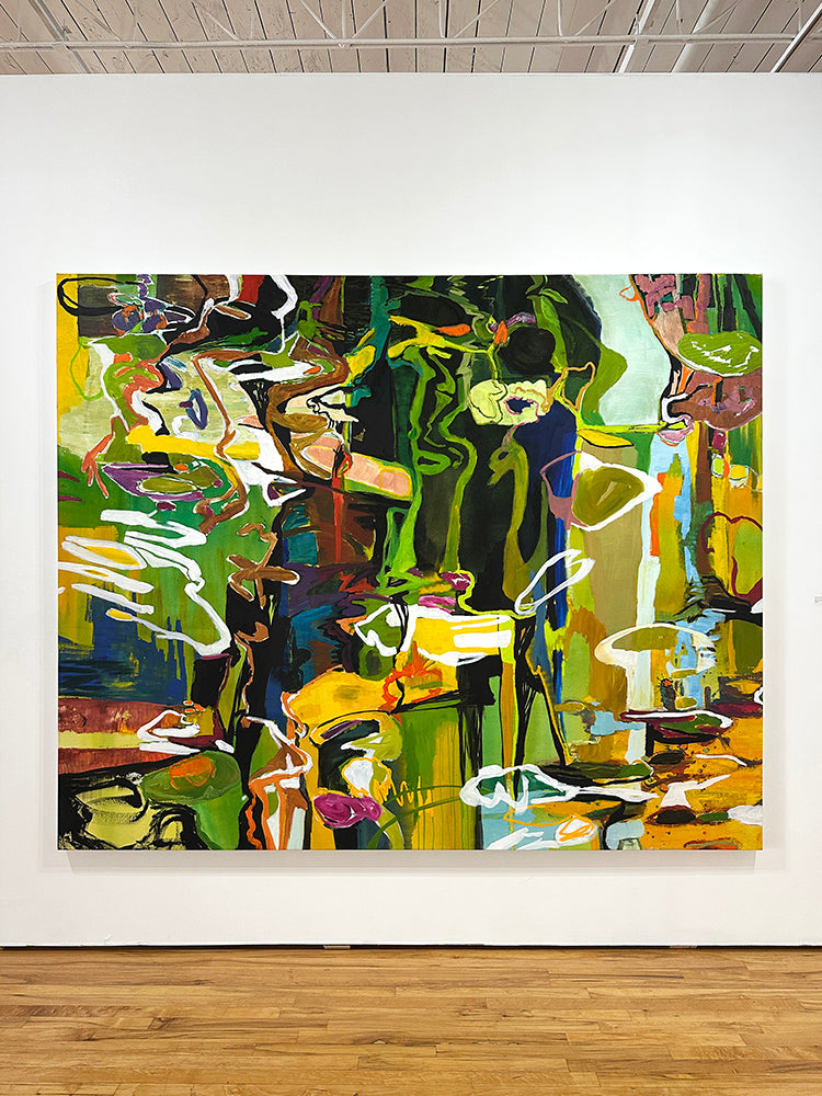 Alexander’s canvases exhibit high colour contrasts using a combination of dry and wet brushwork. Canvases display the artist’s gestural painting style, and have a matte finish. Paintings are ready to hang framed or unframed.