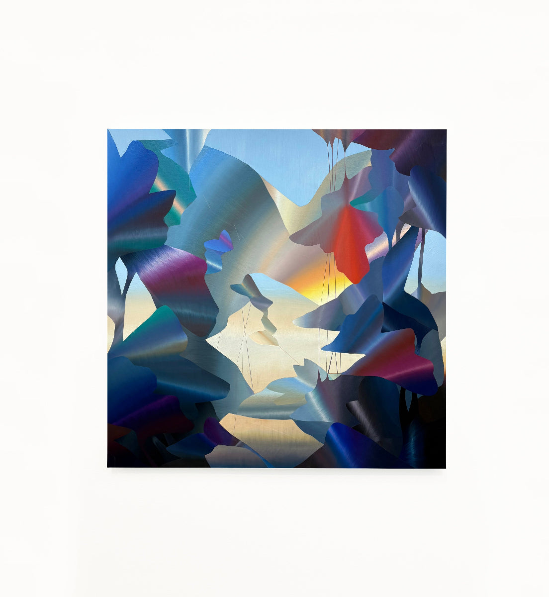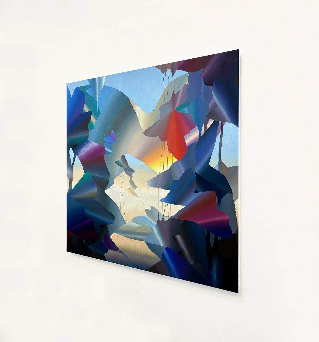 Louie's delicate yet dynamic abstract forms are composed of many thin layers of luminescent oil paint. Canvases have a smooth surface and can be hung framed or unframed.