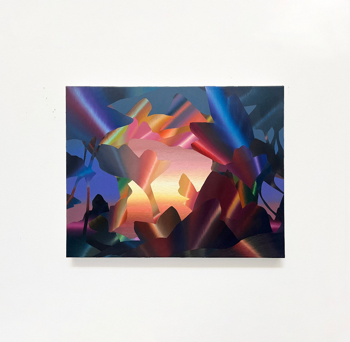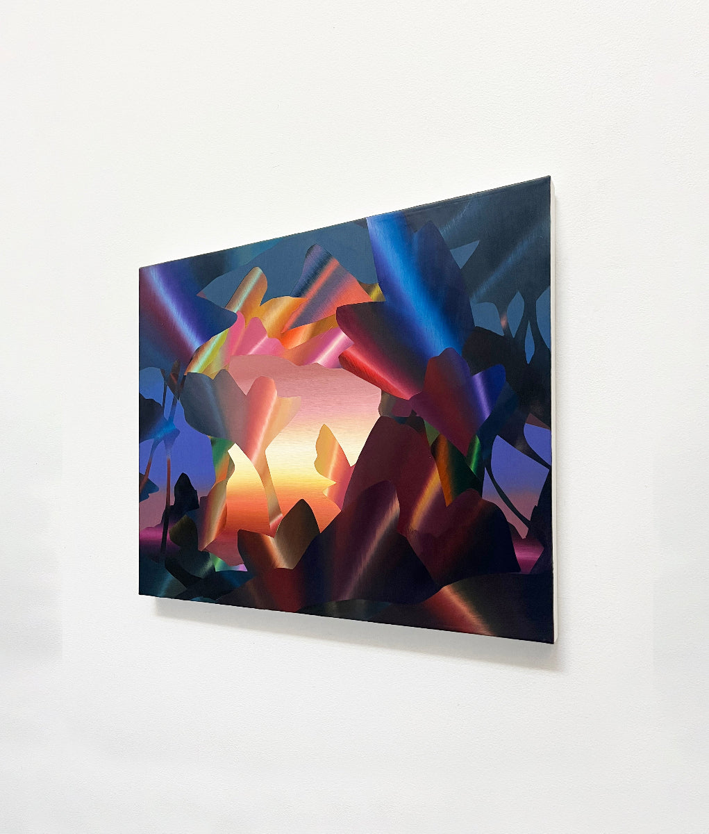 Louie's delicate yet dynamic abstract forms are composed of many thin layers of luminescent oil paint. Canvases have a smooth surface and can be hung framed or unframed.
