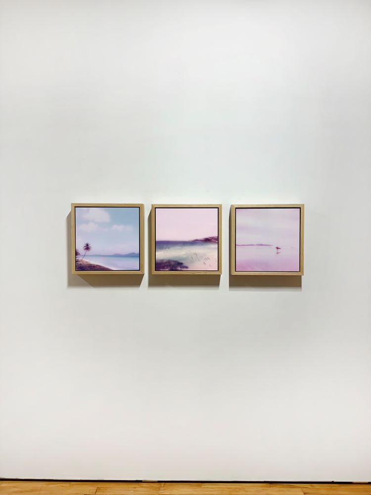 Works are presented plexiglass face-mounted and framed in a floating Natural Ash frame.