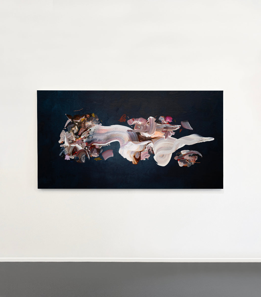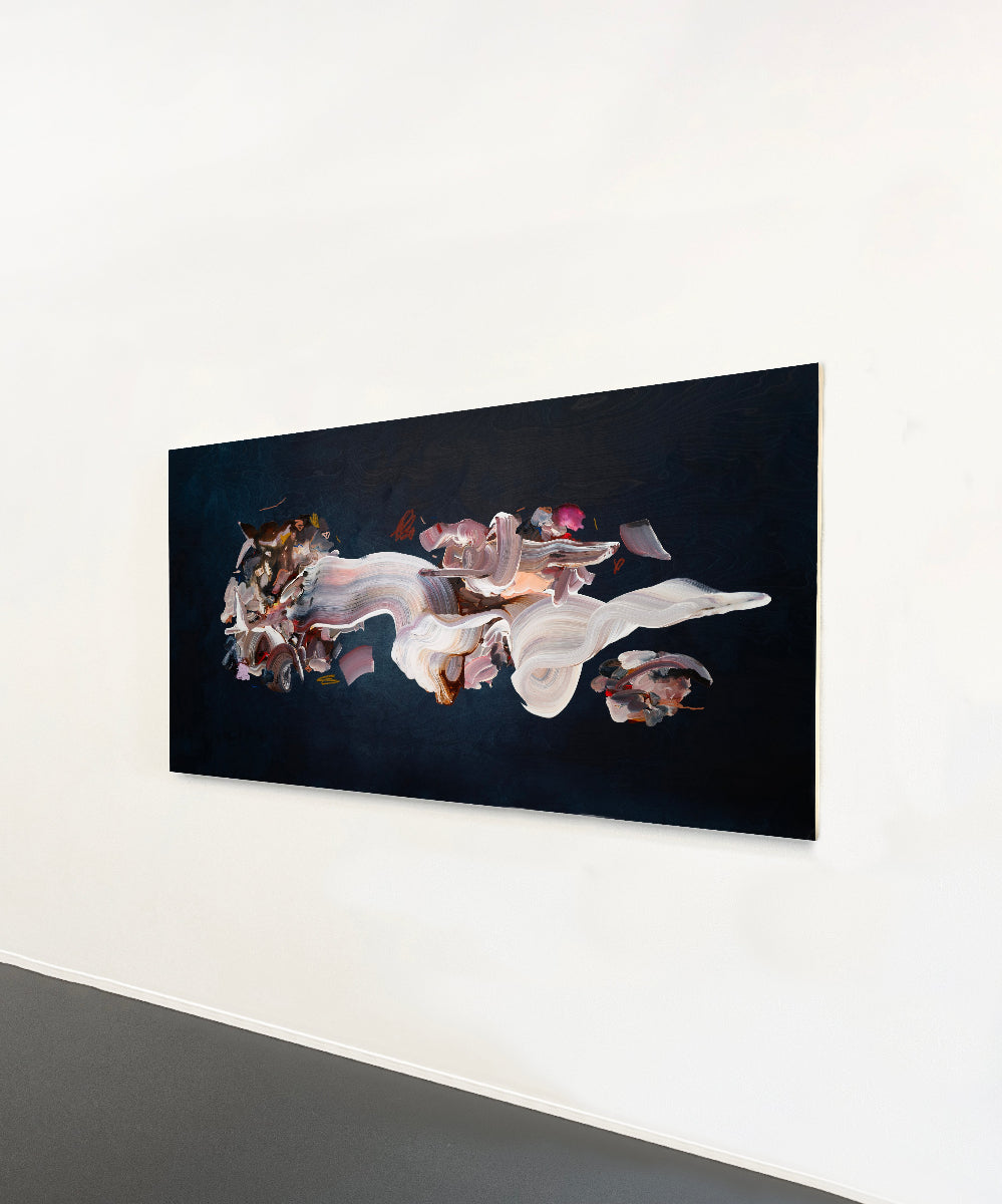 Watson's mixed media artwork on wood panels incorporates paint and ink in contrasting organic and graphic applications. The artworks are finished with a semi-gloss archival varnish finish. Artworks can be displayed in any orientation.