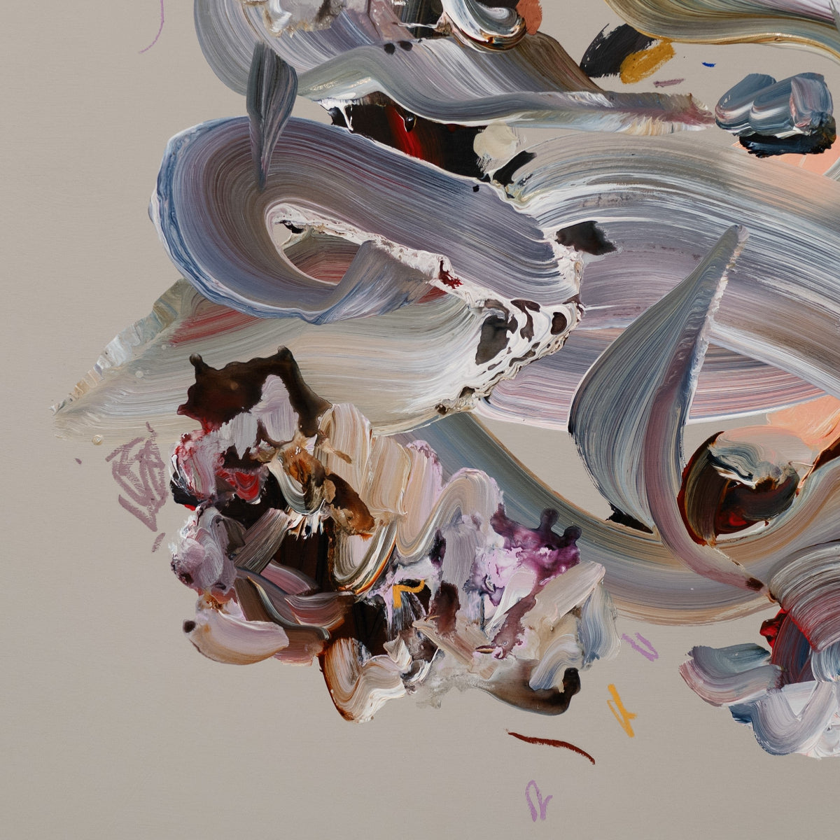Watson's mixed media artwork on wood panels incorporates paint and ink in contrasting organic and graphic applications. The artworks are finished with a semi-gloss archival varnish finish. Artworks can be displayed in any orientation.
