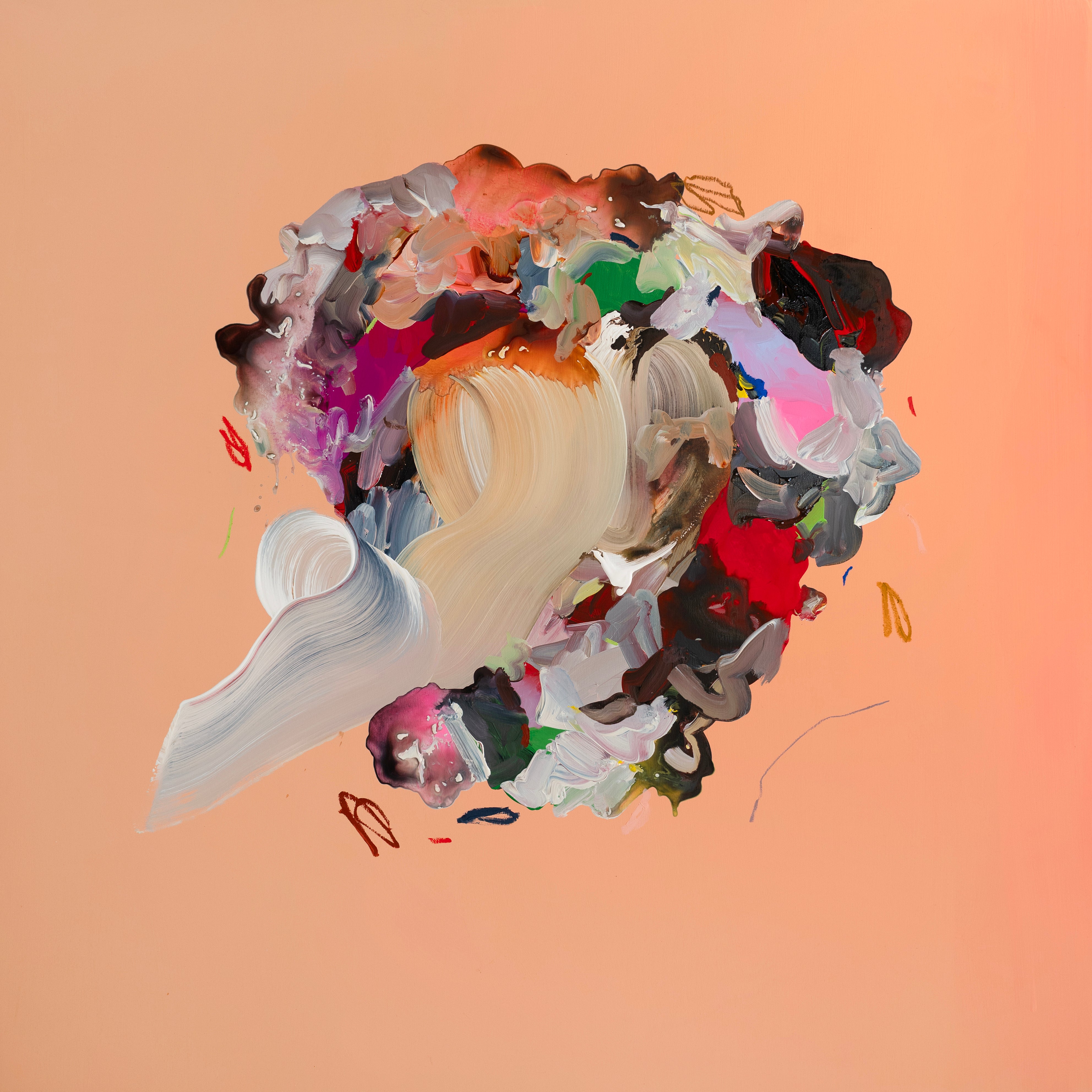 Watson's mixed media artwork on wood panels incorporates paint and ink in contrasting organic and graphic applications. The artworks are finished with a semi-gloss archival varnish finish. Artworks can be displayed in any orientation.