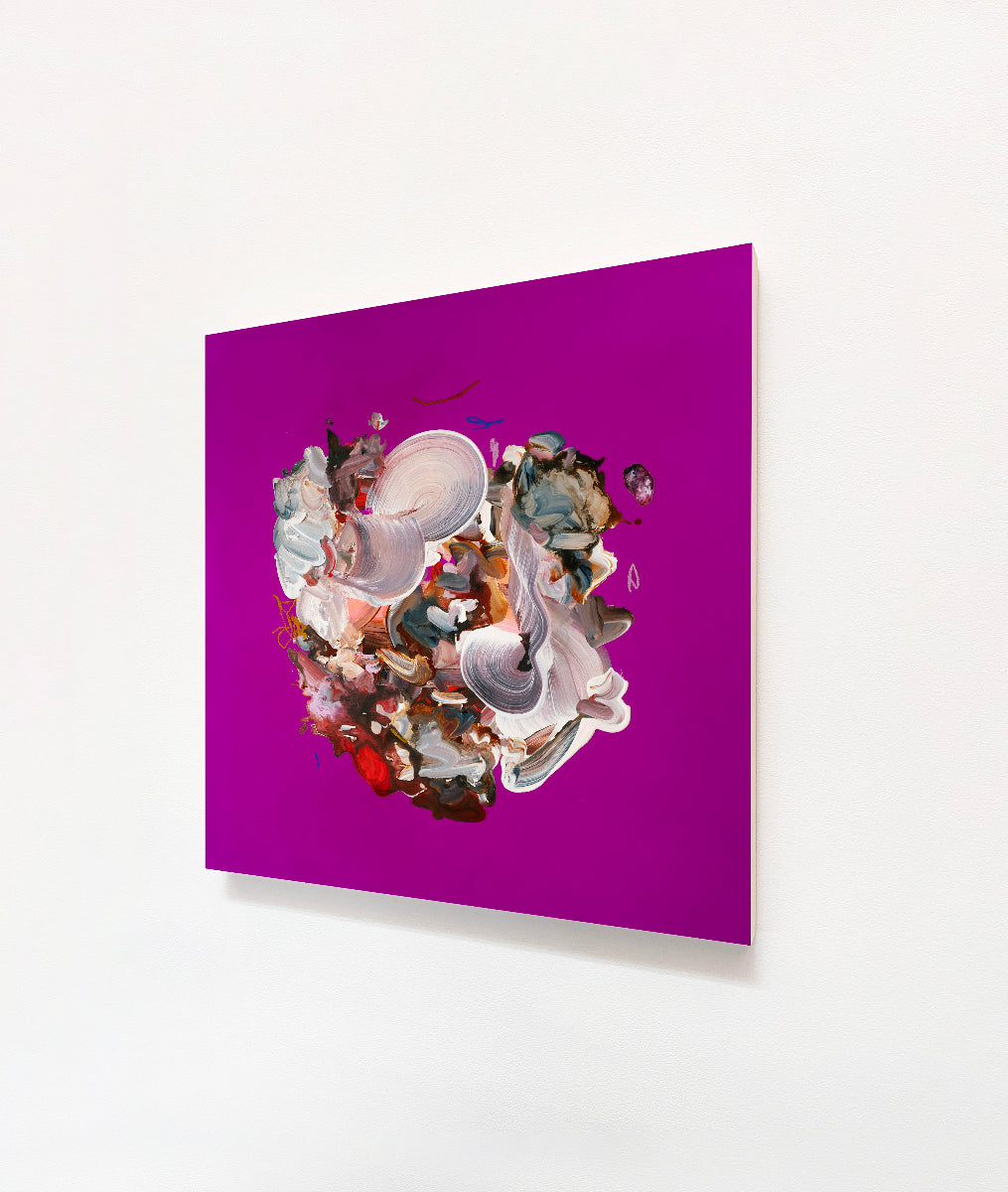 Watson's mixed media artwork on wood panels incorporates paint and ink in contrasting organic and graphic applications. The artworks are finished with a semi-gloss archival varnish finish. Artworks can be displayed in any orientation.