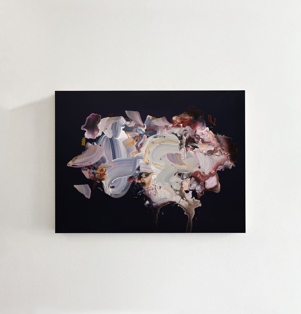 Watson's mixed media artwork on wood panels incorporates paint and ink in contrasting organic and graphic applications. The artworks are finished with a semi-gloss archival varnish finish. Artworks can be displayed in any orientation.