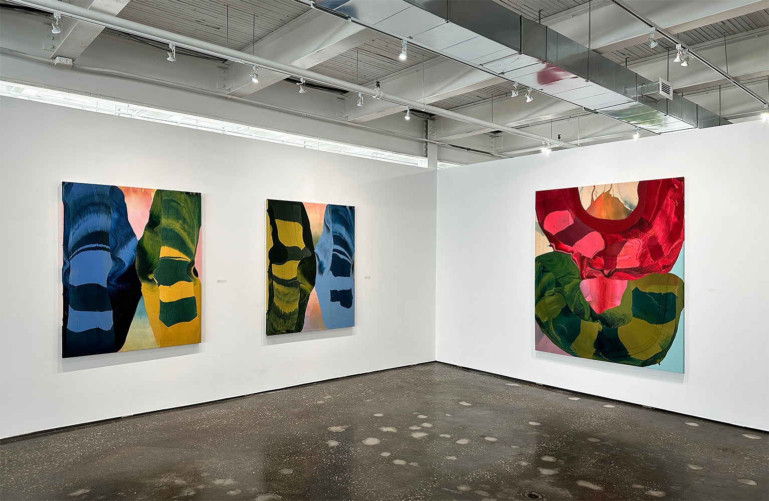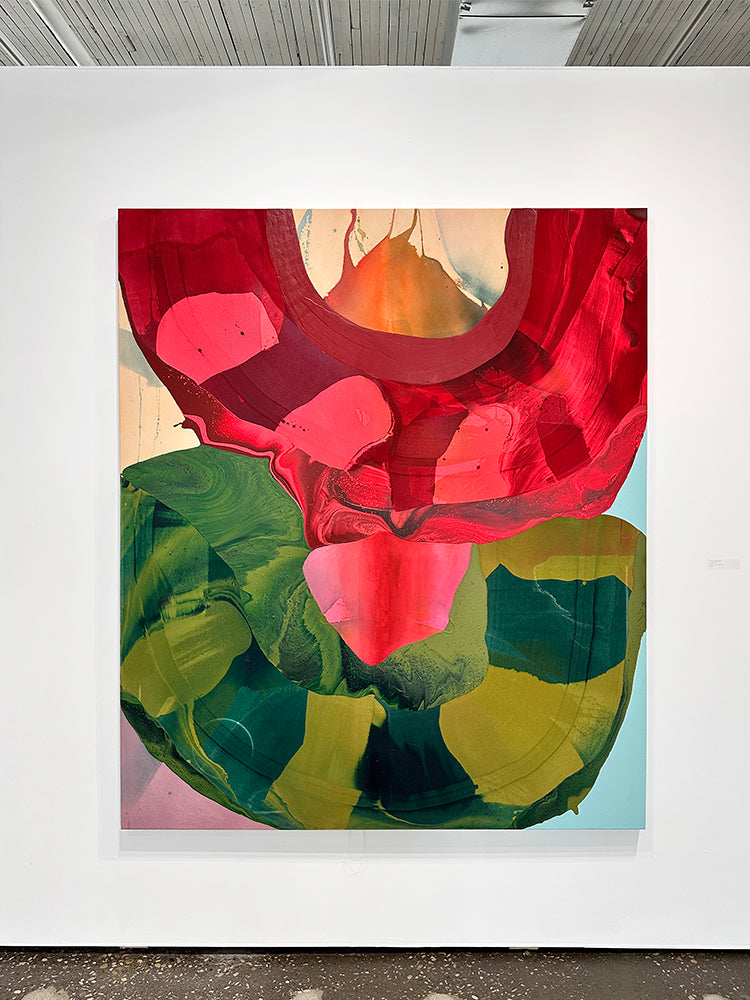 Each surface becomes a record of movement: pigment flowing, colliding, and pooling into unexpected harmonies and tensions. I am fascinated in the space where control meets chance and where something deliberate turns into something you cannot fully plan for - Kathryn Macnaughton
