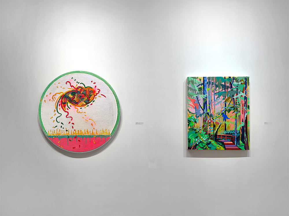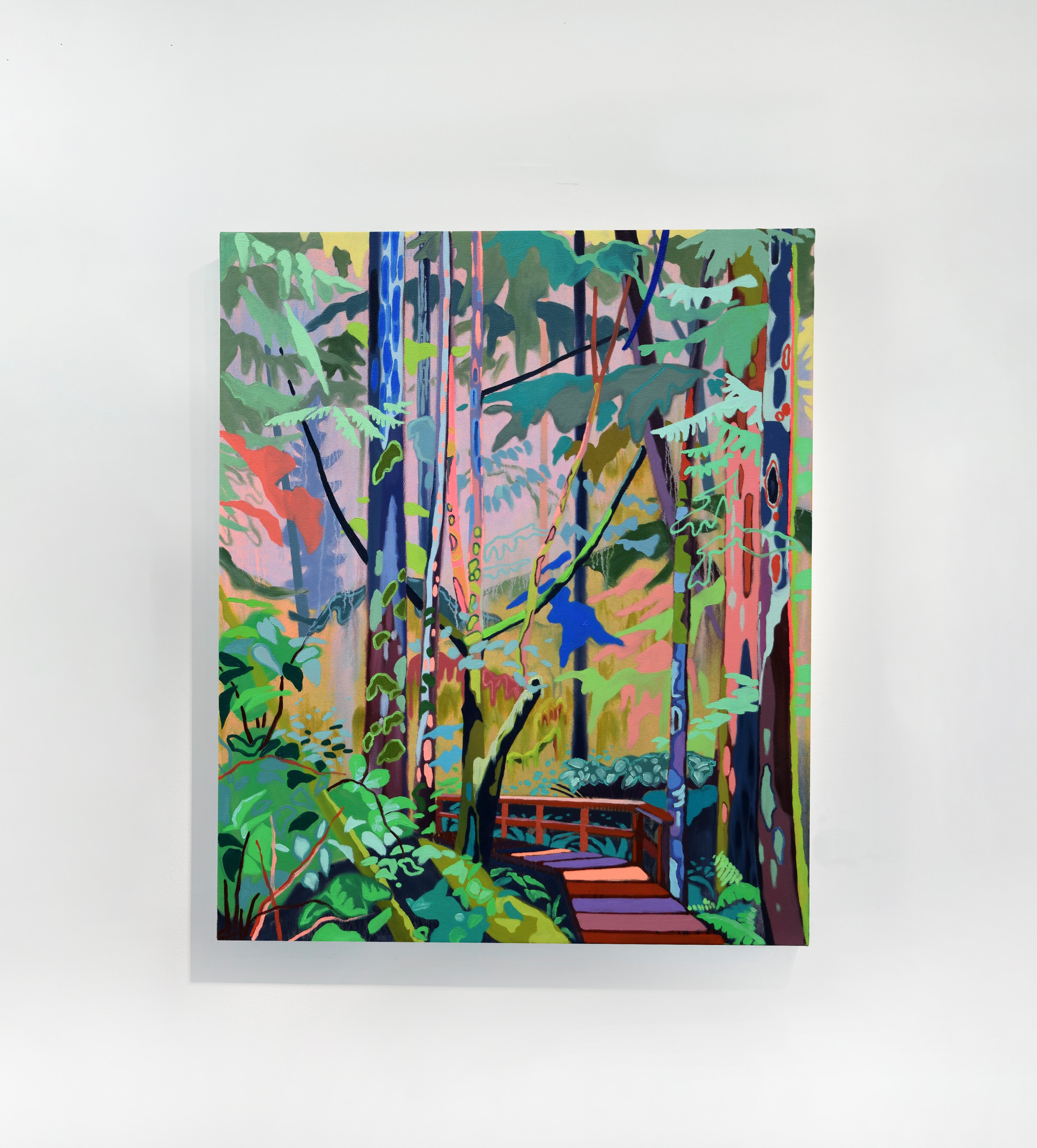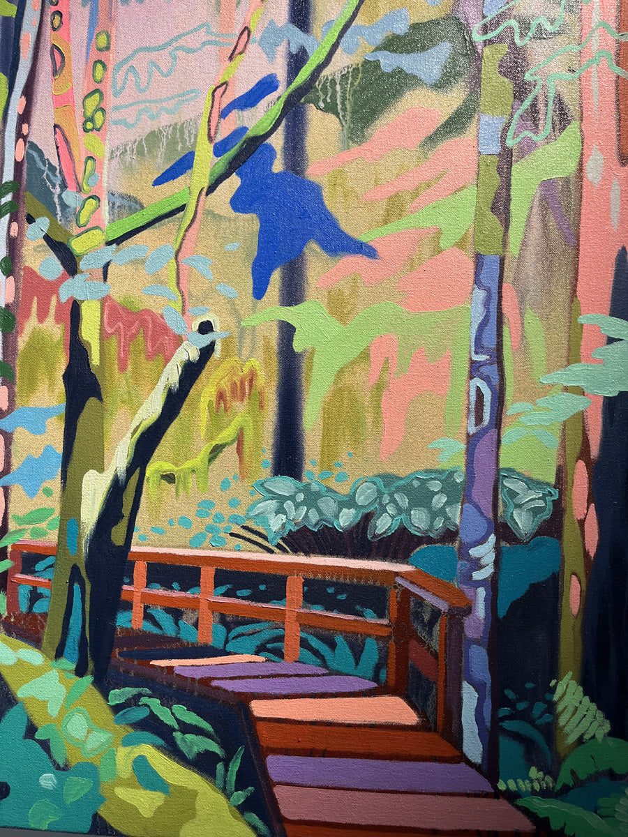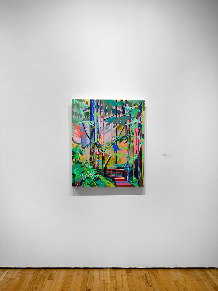"This work [along with The Sky Held by Trees and Holding the Line] comes from a deeply personal place. I had traveled to B.C. for the opening of my show Fairytales for the End of the World and gave myself a few extra days on Vancouver Island. My grandmother had passed away only months before, and I was still raw from that loss. She had been such a constant, kind, and quietly funny presence in my life. Grief sat heavily beside the ongoing anxiety of the pandemic, and I felt untethered. Wandering through those coastal rainforests became a way to find my footing again. Surrounded by massive, ancient trees, I felt both small and supported, as though their quiet strength was offering me space to breathe, to grieve, and to begin piecing myself back together." - Mel Gausden, 2025