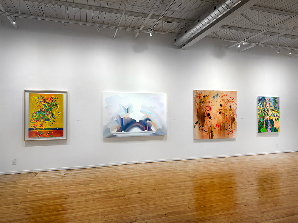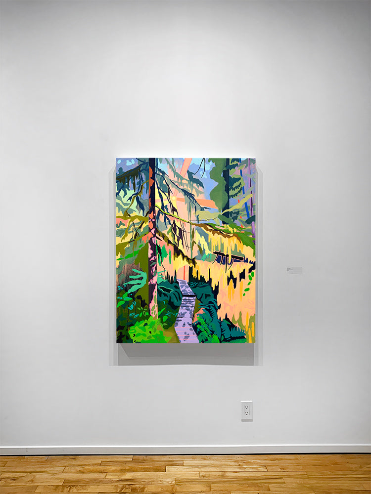 Gausden's interactive landscapes and intimate figurative works are inspired by social media content and influenced by photographic techniques. Gausden's works have smooth surfaces with impasto elements and white sides, the canvases are ready to hang framed or unframed.