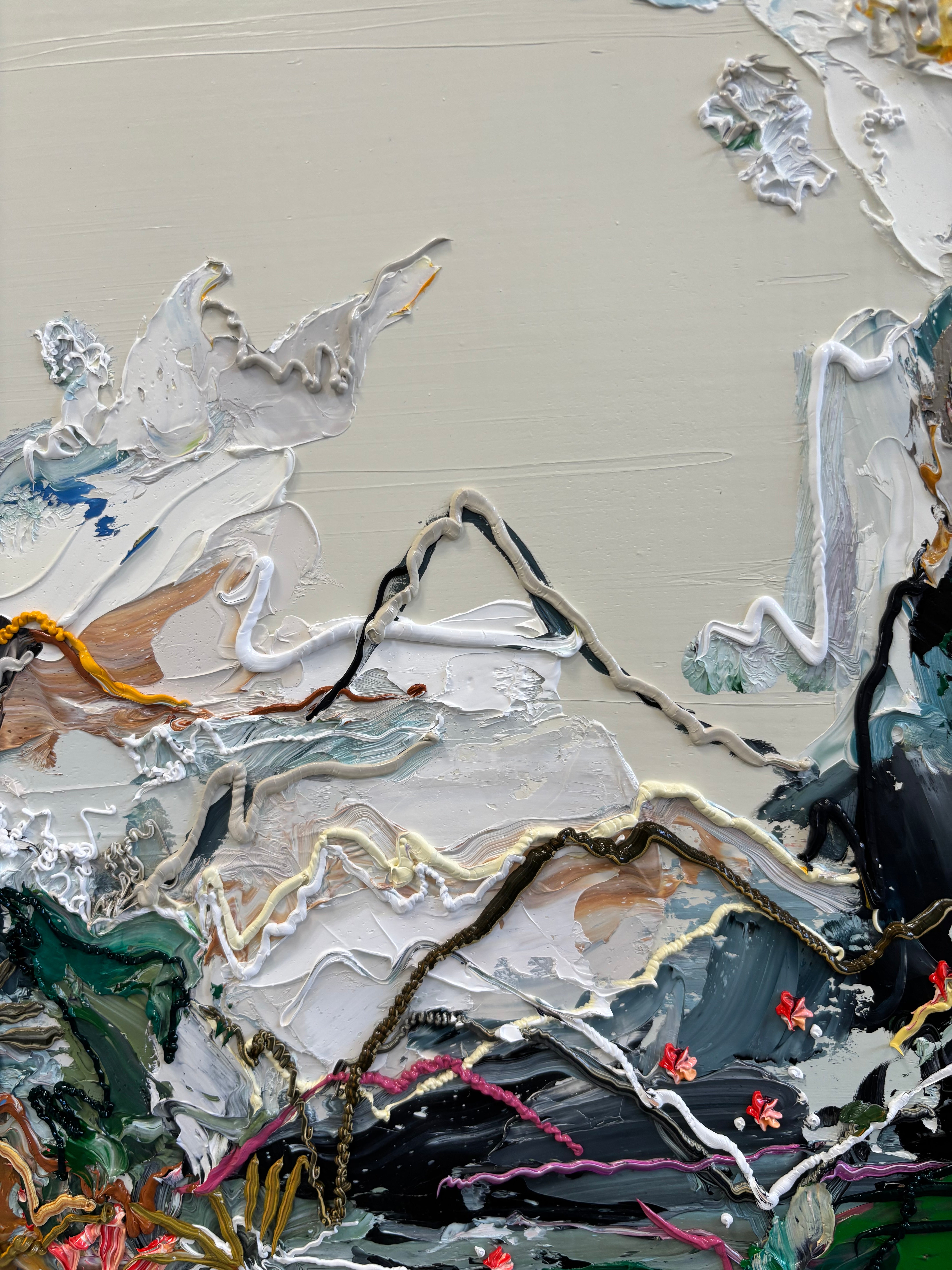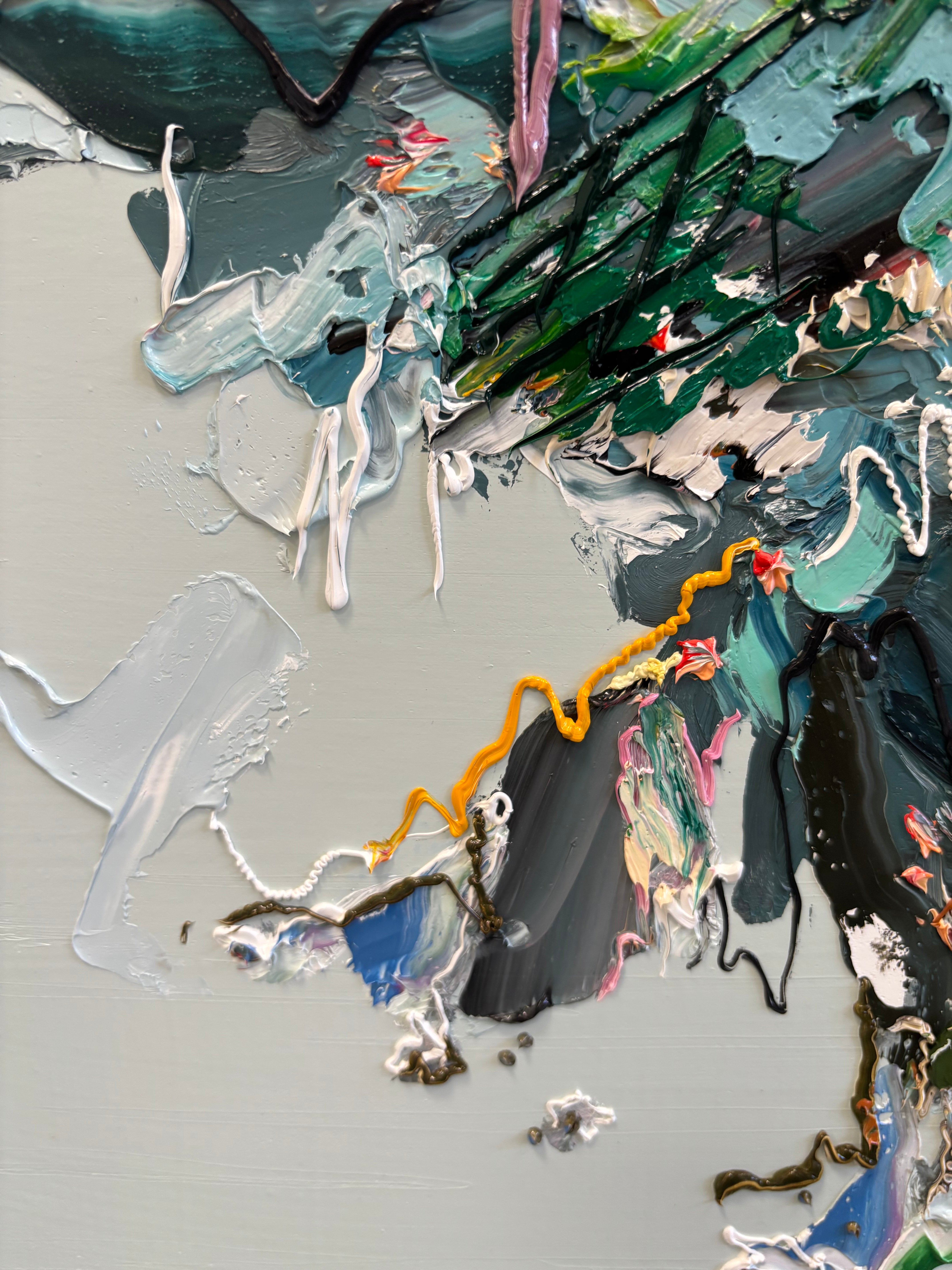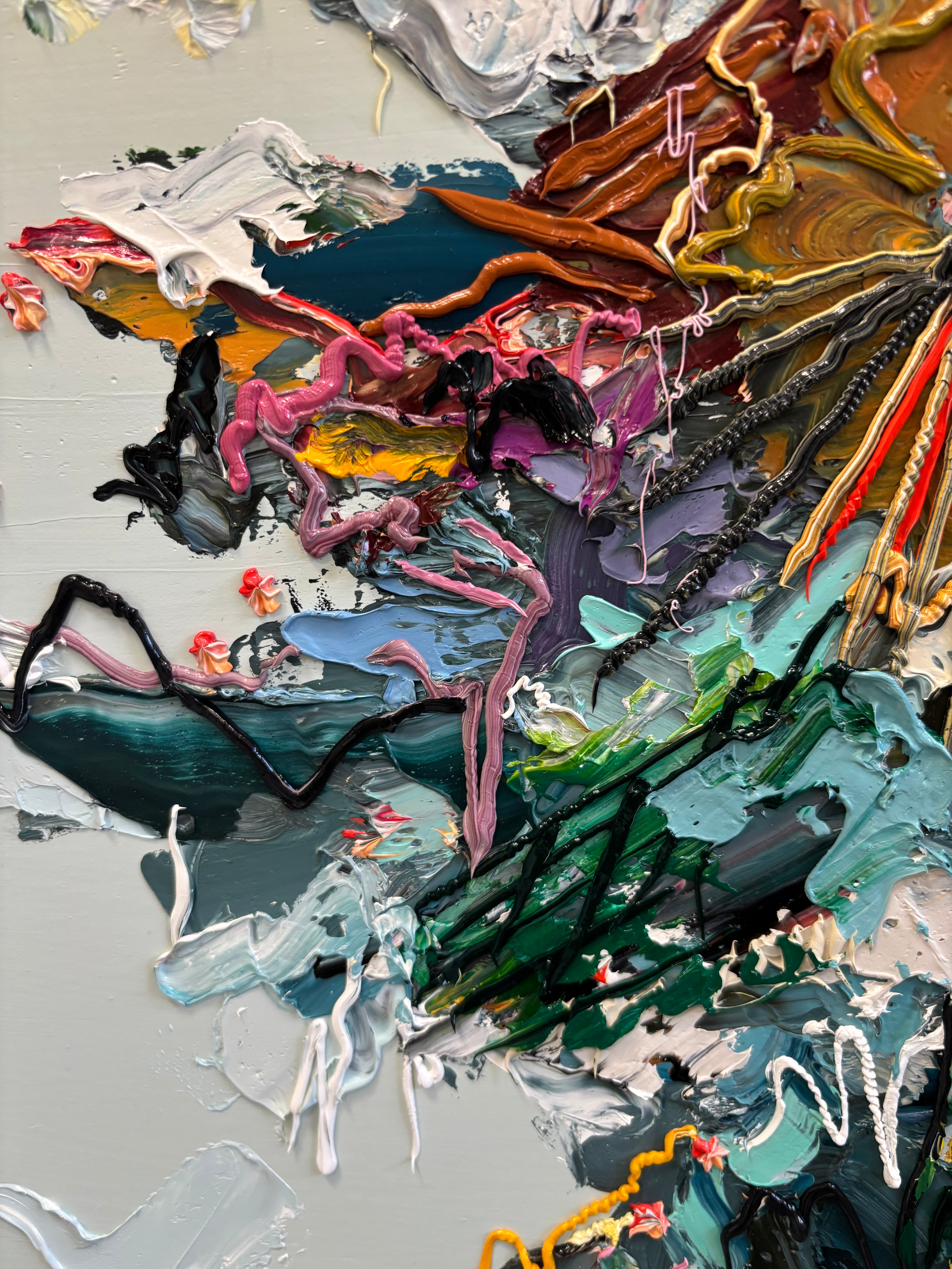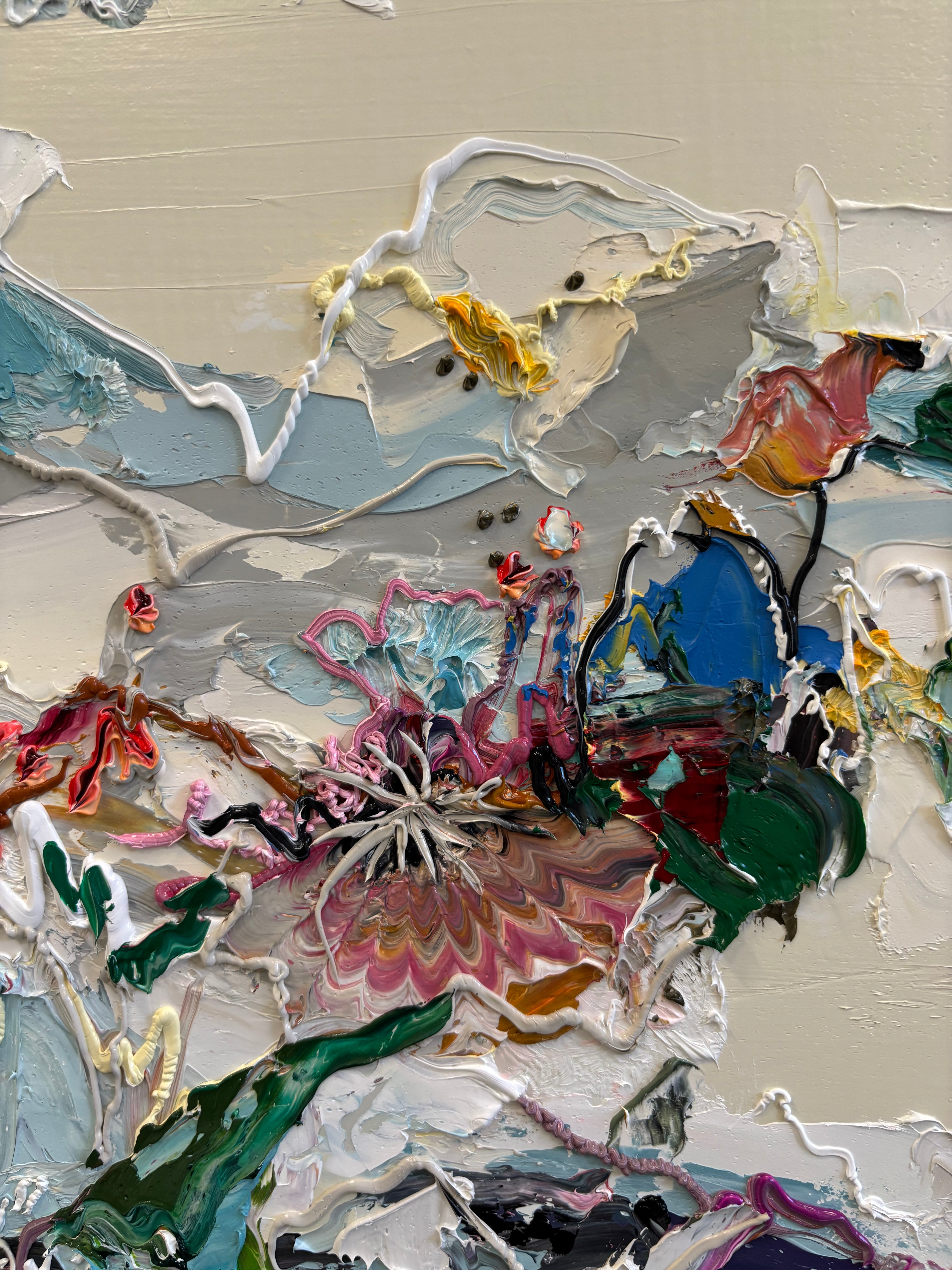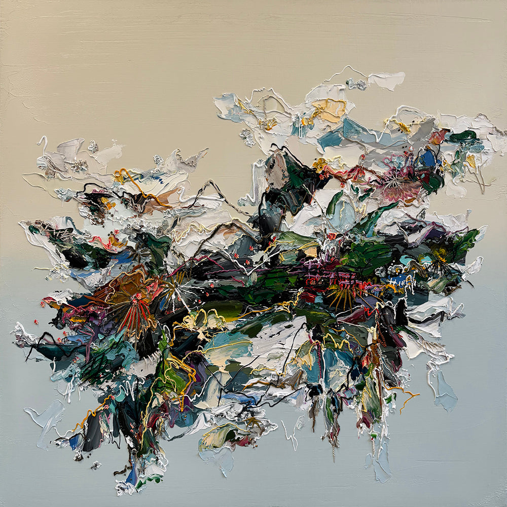 Nicole Katsuras' oil on canvas abstractions are characterized by the artist's distinct gestural mark-making, bold colours and impasto surfaces. Paintings are ready to be hung framed or unframed.