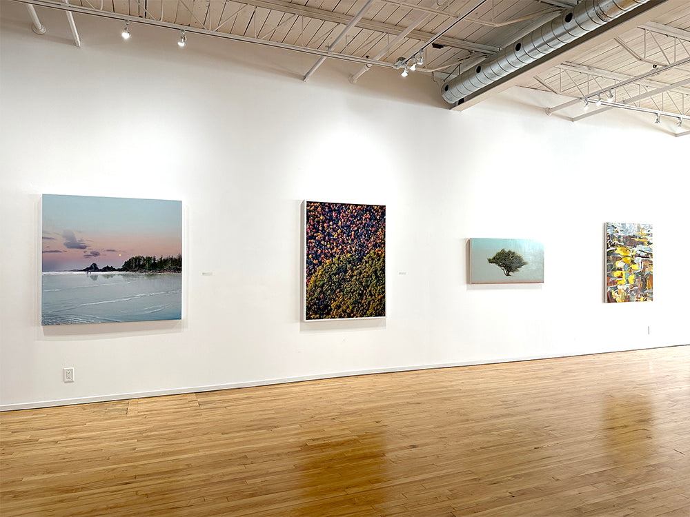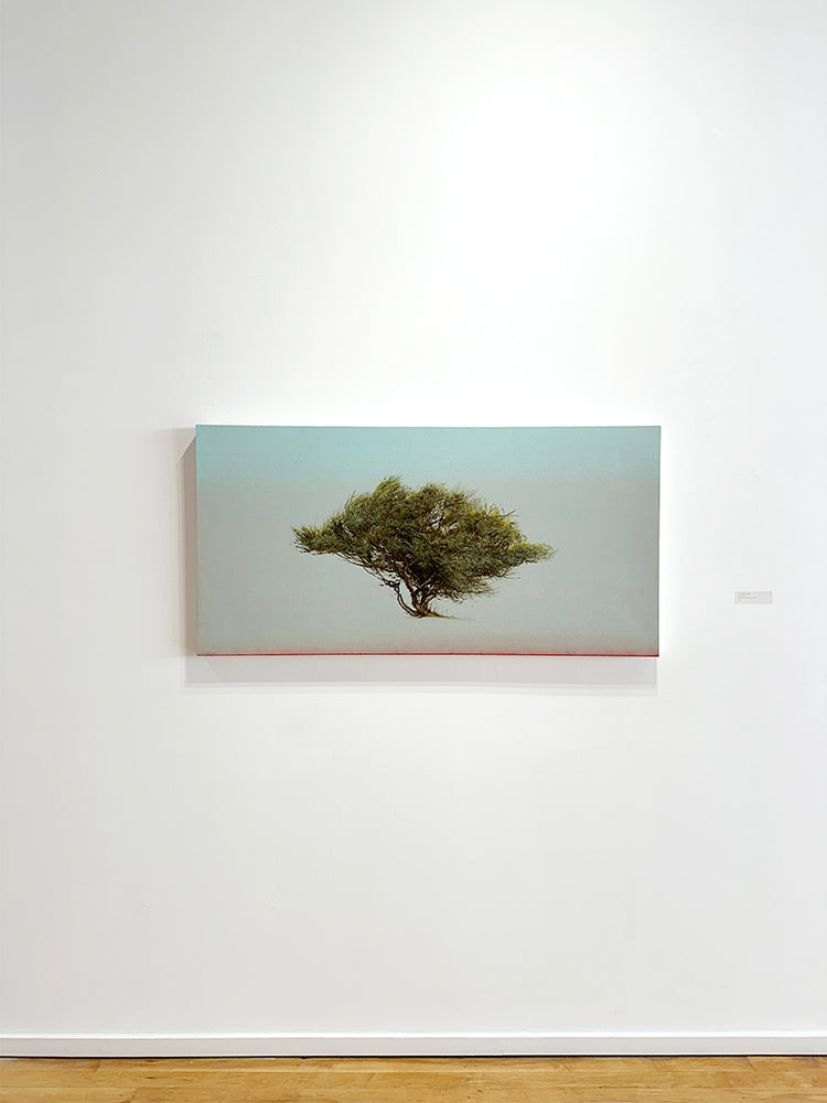 Marchessault begins his tree studies with a single, swift brushstroke from which his delicate foliage and landscape scenes organically grow. The artist uses a combination of techniques, including cloth and brushwork and spray paints to create smooth, highly detailed surfaces. Marchessault paints on both canvas and wood panel.