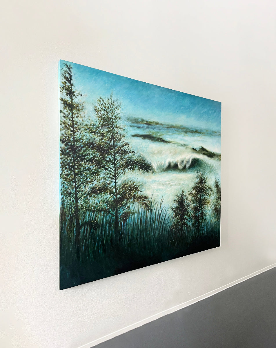 Paisley’s painterly style presents a play of focus, with blended elements working together in a single composition. The artist’s canvases are composed of chromatically luminous brushstrokes with a varnished finish. Works have painted sides and are ready to hang unframed.