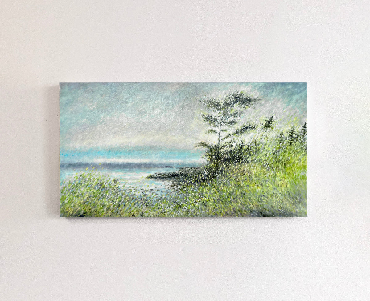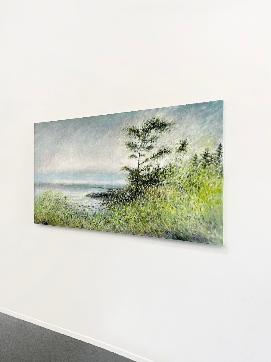 Paisley’s painterly style presents a play of focus, with blended elements working together in a single composition. The artist’s canvases are composed of chromatically luminous brushstrokes with a varnished finish. Works have painted sides and are ready to hang unframed.