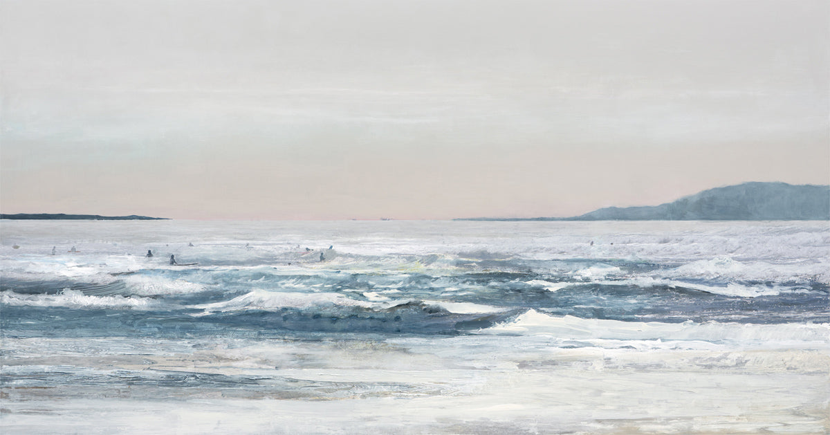 Nederveen's panels incorporate imagery from personal landscape and architectural photos into painted and stained panels. Works are finished with a satin varnish that allows areas of textured paint to show through, revealing evidence of the artist's process.