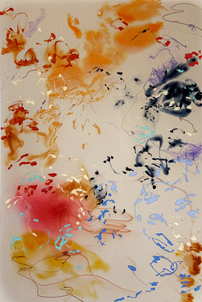 Celia Lees abstract works seek to capture the ephemeral – creating while living in the moment, channeling inner emotions, and conveying that which cannot be articulated. Lees utilizes an abstract approach which allows her to communicate through physical gestures and instinctual mark-making. The artist works with large applications of paint and deftly balanced compositions, while embracing the chaos that occurs throughout the process.