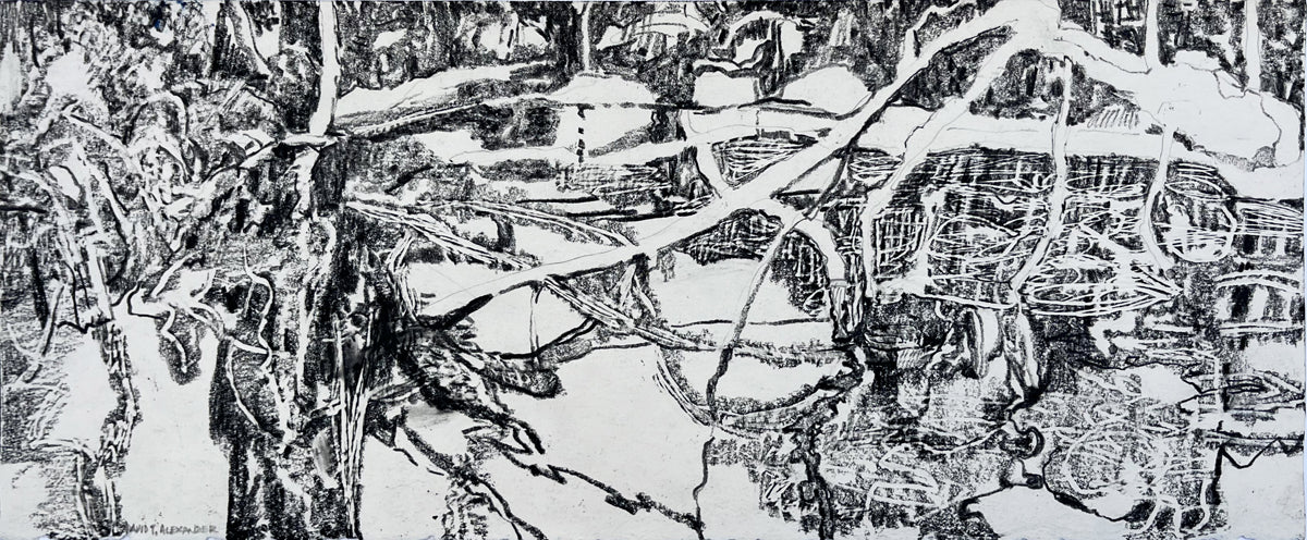 Alexander’s canvases exhibit high colour contrasts using a combination of dry and wet brushwork. Canvases display the artist’s gestural painting style, and have a matte finish. Paintings are ready to hang framed or unframed.