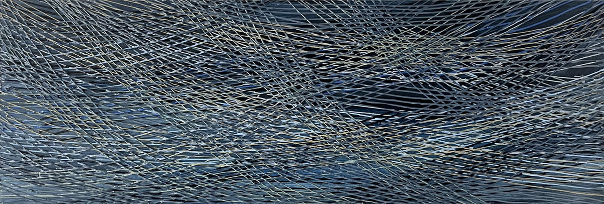 Christou’s dimensional paintings are constructed by repetitive weaving of colour to create optical play and intricacy. She builds her abstract compositions with layers of acrylic paint or oil pastel, forming surfaces with incredible depth and texture.