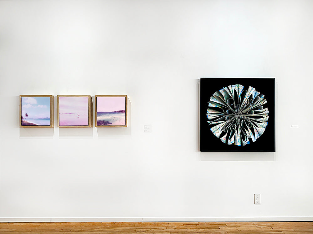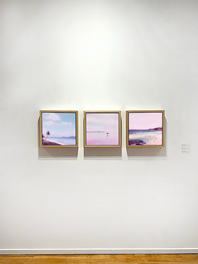 Works are presented plexiglass face-mounted and framed in a floating Natural Ash frame.