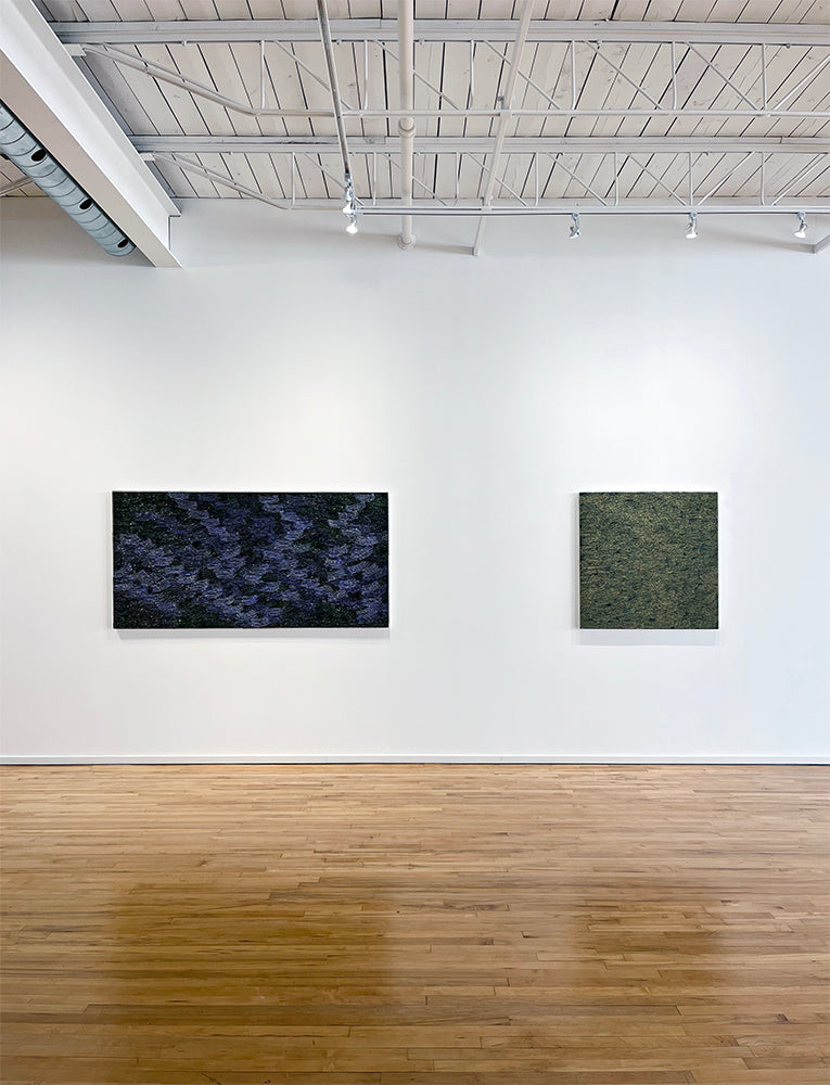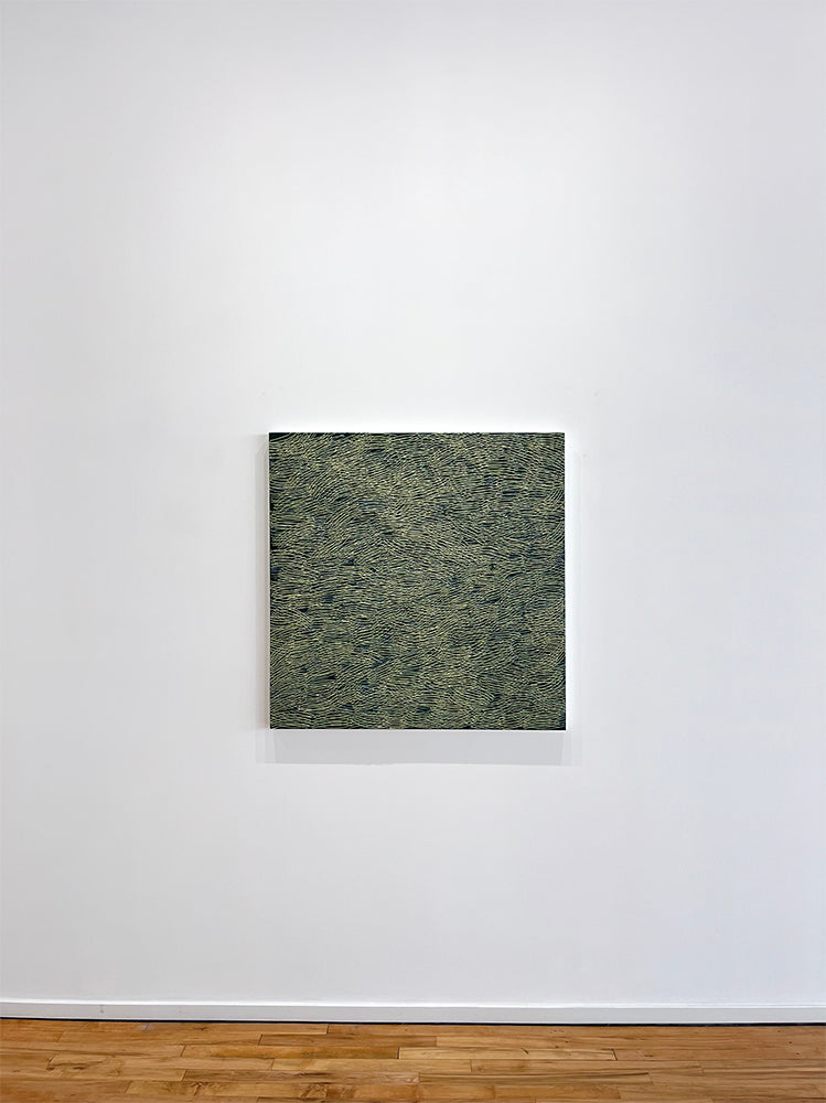 Christou’s dimensional paintings are constructed by repetitive weaving of colour to create optical play and intricacy. She builds her abstract compositions with layers of acrylic paint or oil pastel, forming surfaces with incredible depth and texture.
