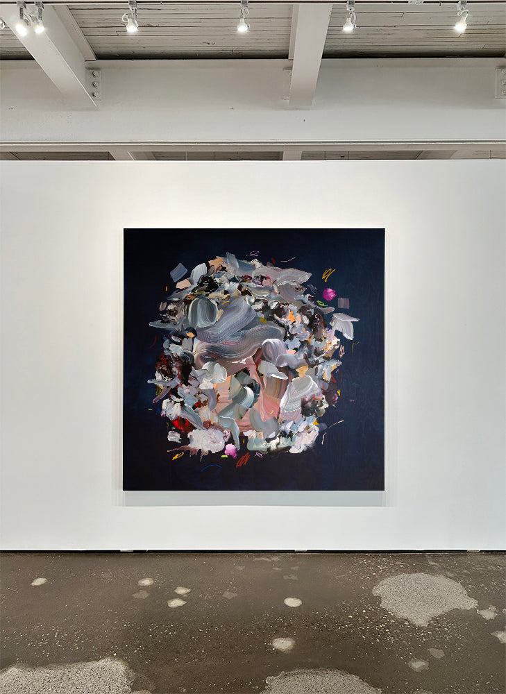 Watson's mixed media artwork on wood panels incorporates paint and ink in contrasting organic and graphic applications. The artworks are finished with a semi-gloss archival varnish finish. Artworks can be displayed in any orientation.