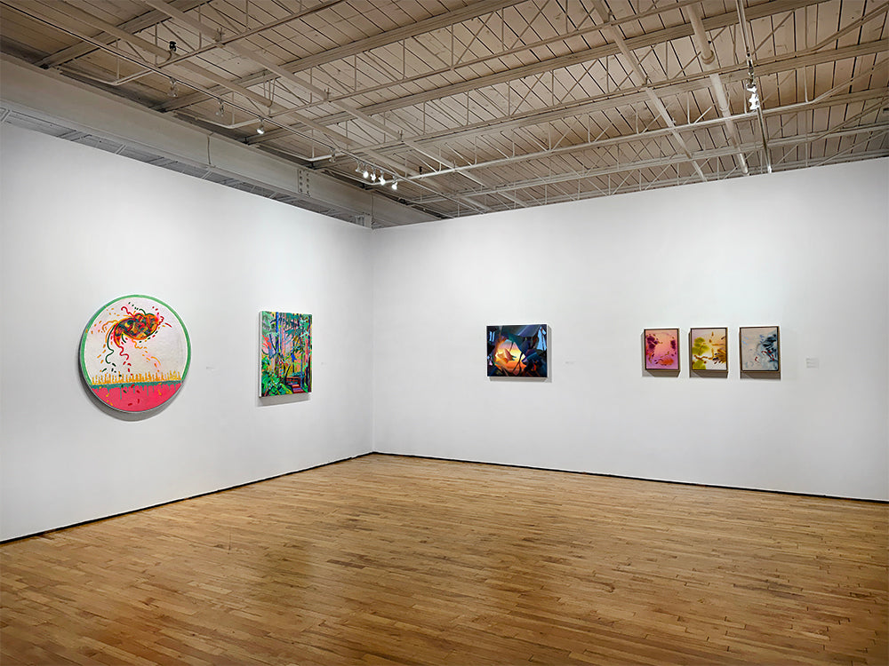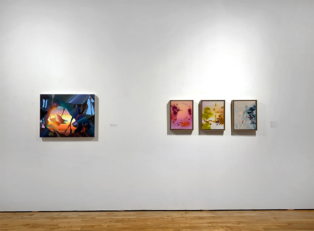 Louie's delicate yet dynamic abstract forms are composed of many thin layers of luminescent oil paint. Canvases have a smooth surface and can be hung framed or unframed.