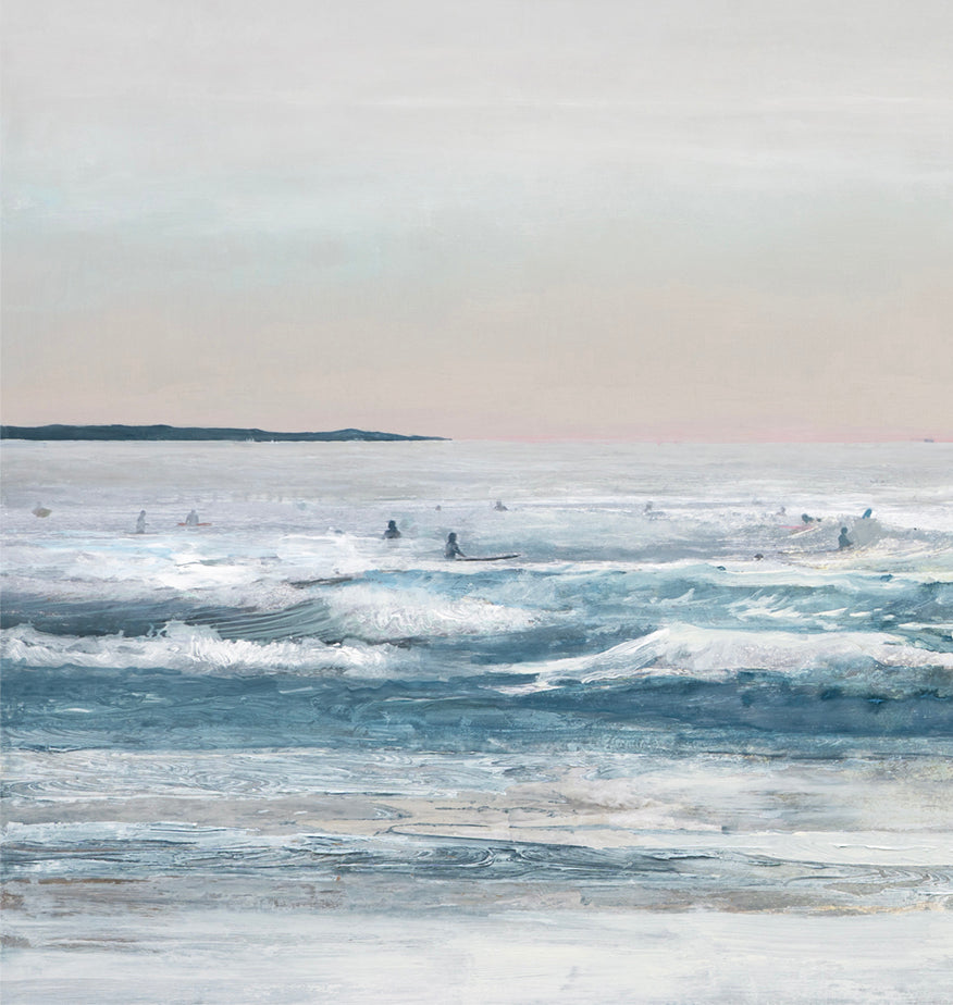 Nederveen's panels incorporate imagery from personal landscape and architectural photos into painted and stained panels. Works are finished with a satin varnish that allows areas of textured paint to show through, revealing evidence of the artist's process.