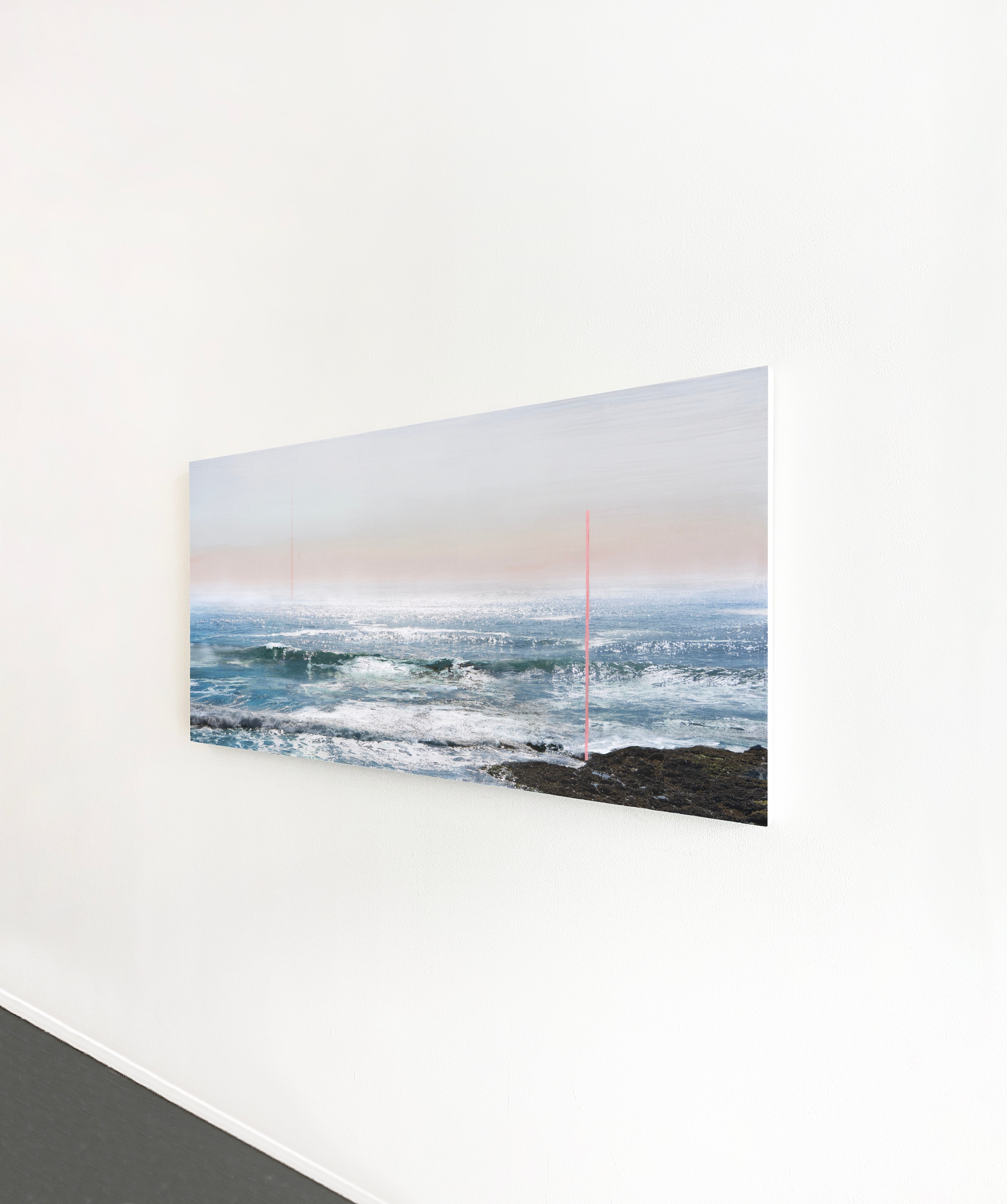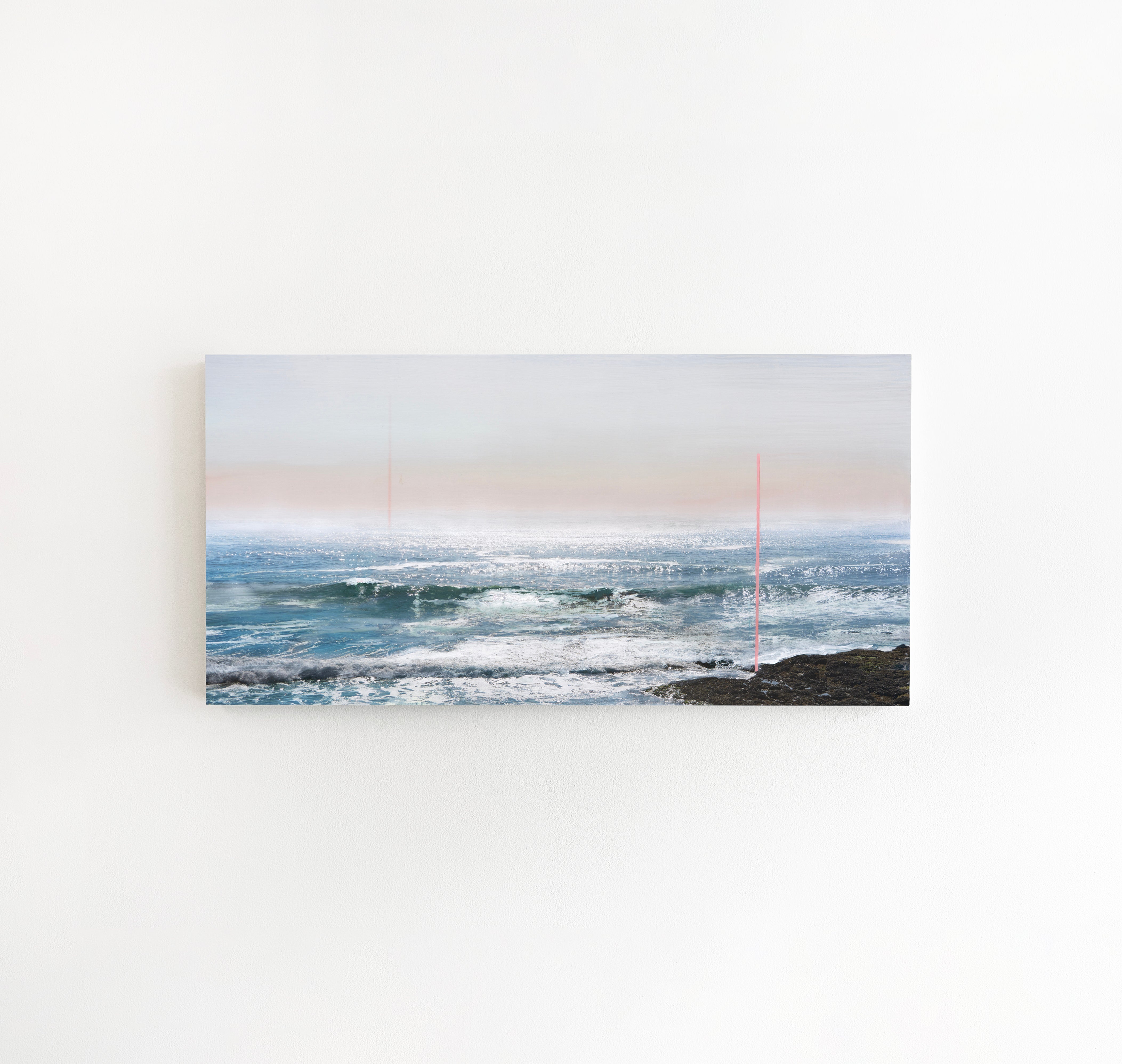 Nederveen's panels incorporate imagery from personal landscape and architectural photos into painted and stained panels. Works are finished with a satin varnish that allows areas of textured paint to show through, revealing evidence of the artist's process.