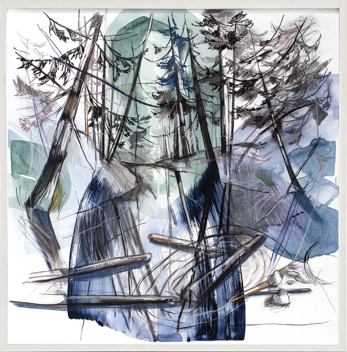 Mixed Media on Paper, Framed in White