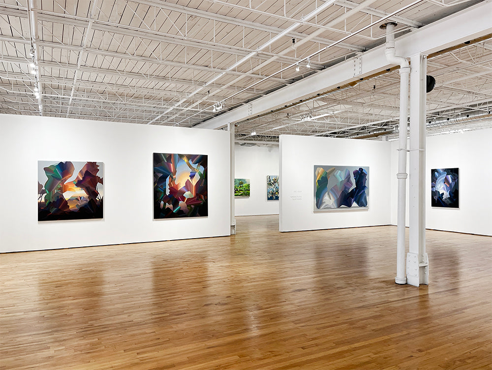 Louie's delicate yet dynamic abstract forms are composed of many thin layers of luminescent oil paint. Canvases have a smooth surface and can be hung framed or unframed.