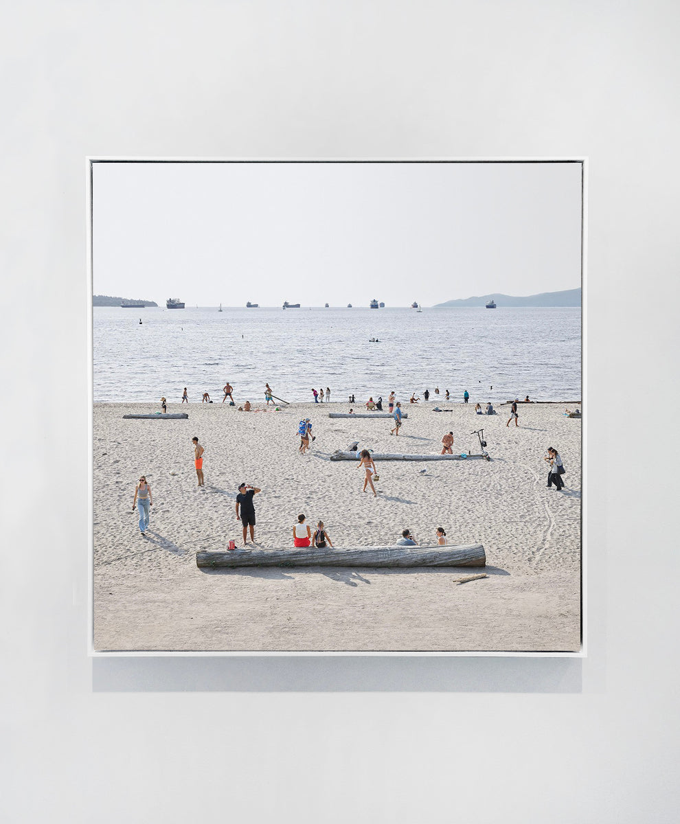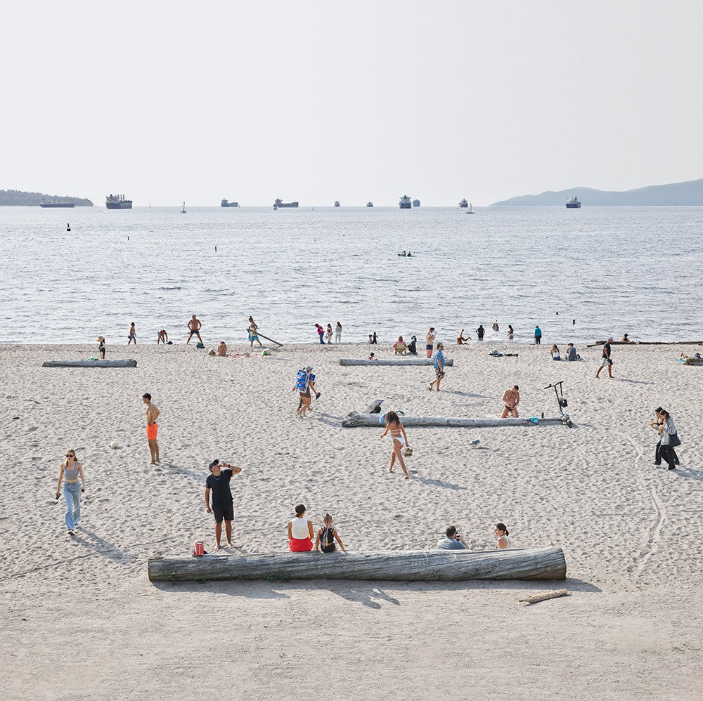 This uniquely Vancouver image features the Northwest Coast city’s ironically greyish summer skies as well as the unmistakable freighters of English Bay, with colour provided by the clothing and personalities of the people themselves.