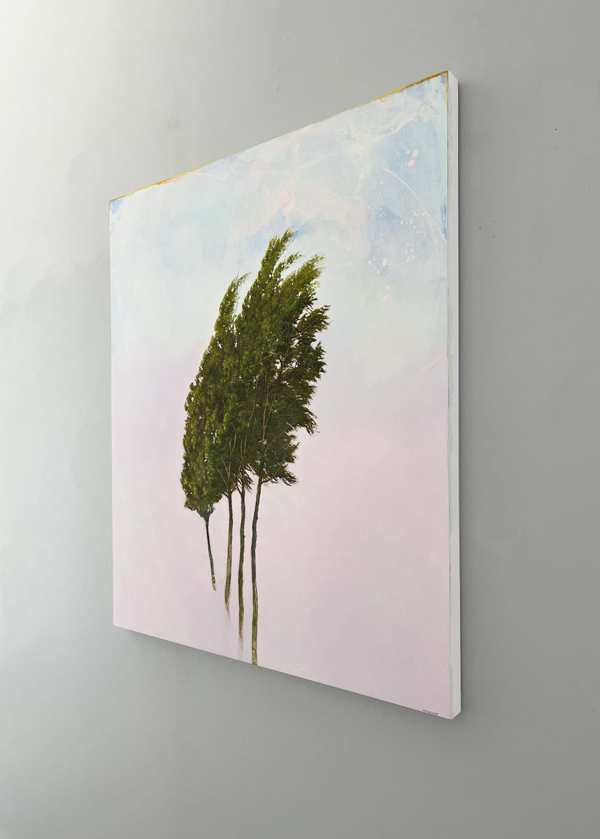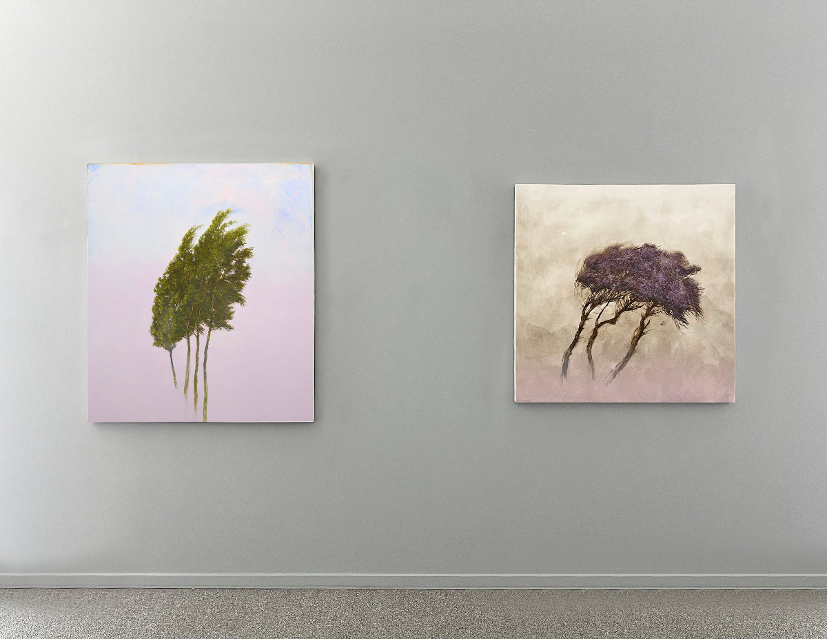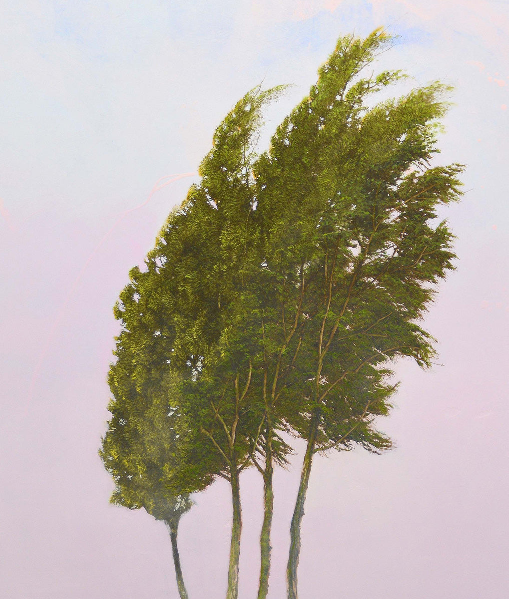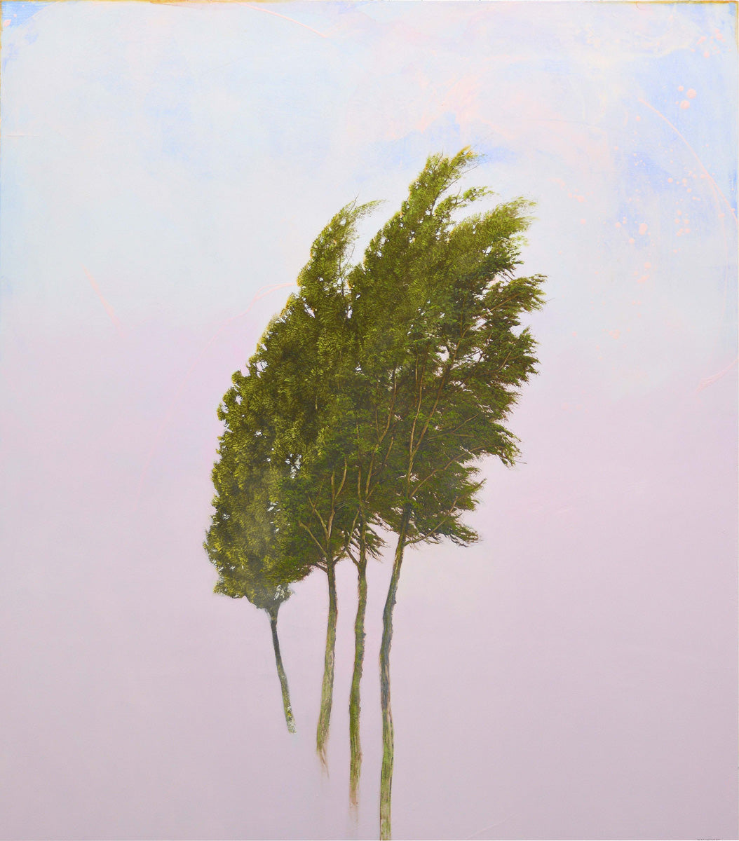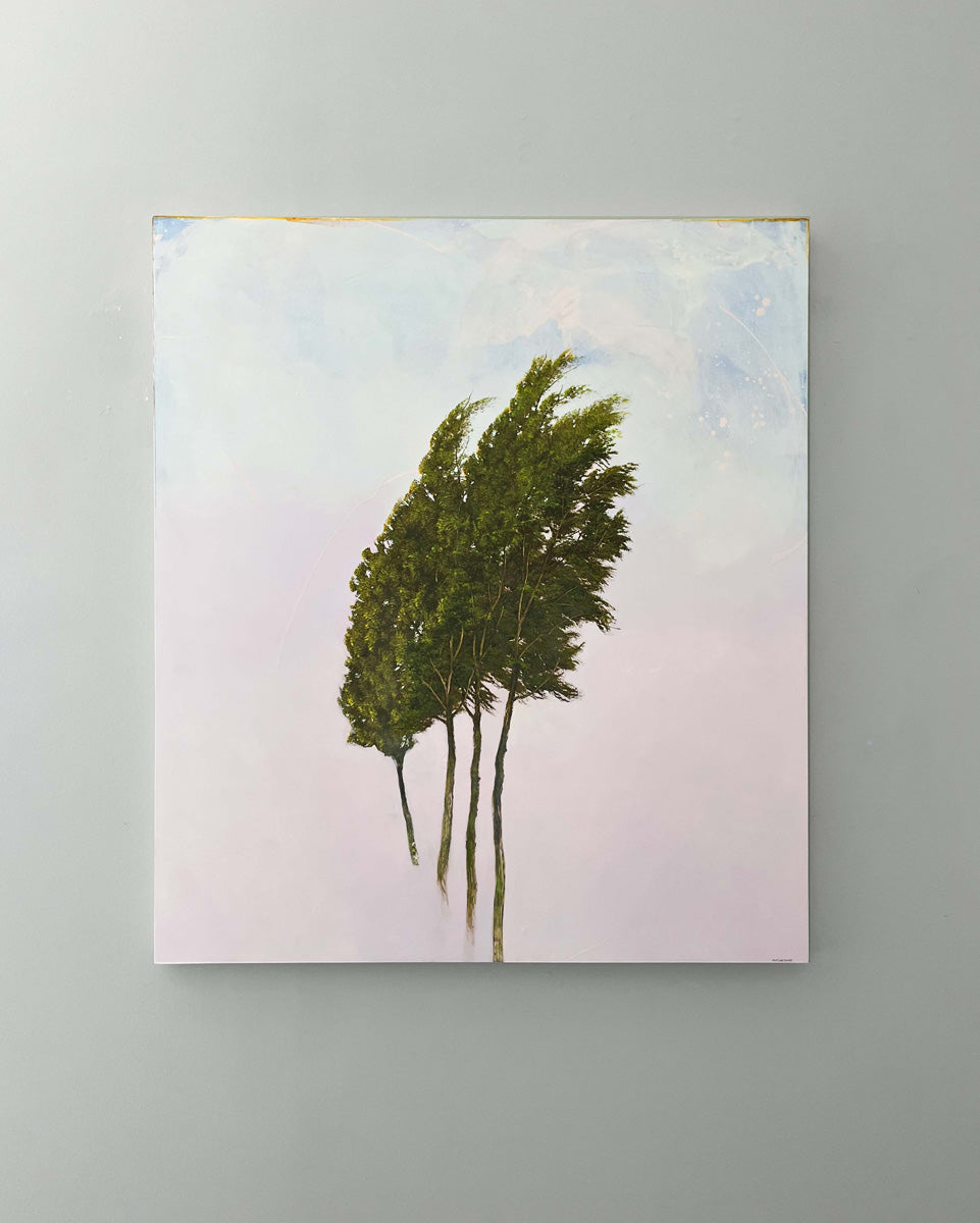 Marchessault begins his tree studies with a single, swift brushstroke from which his delicate foliage and landscape scenes organically grow. The artist uses a combination of techniques, including cloth and brushwork and spray paints to create smooth, highly detailed surfaces. Marchessault paints on both canvas and wood panel.