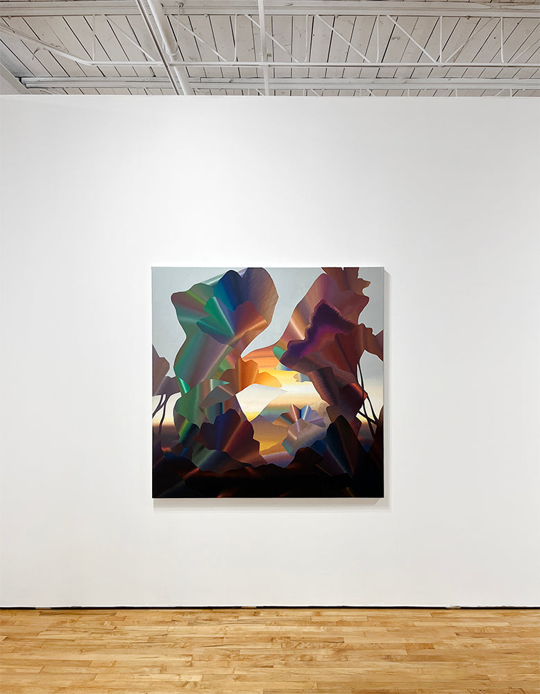 Louie's delicate yet dynamic abstract forms are composed of many thin layers of luminescent oil paint. Canvases have a smooth surface and can be hung framed or unframed.